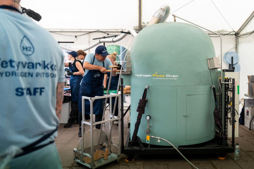 - Kirkkopuistossa kävijät pääsivät tekemään vetyaiheisen tietovisan ja nauttimaan vedyllä paistetusta pizzasta.